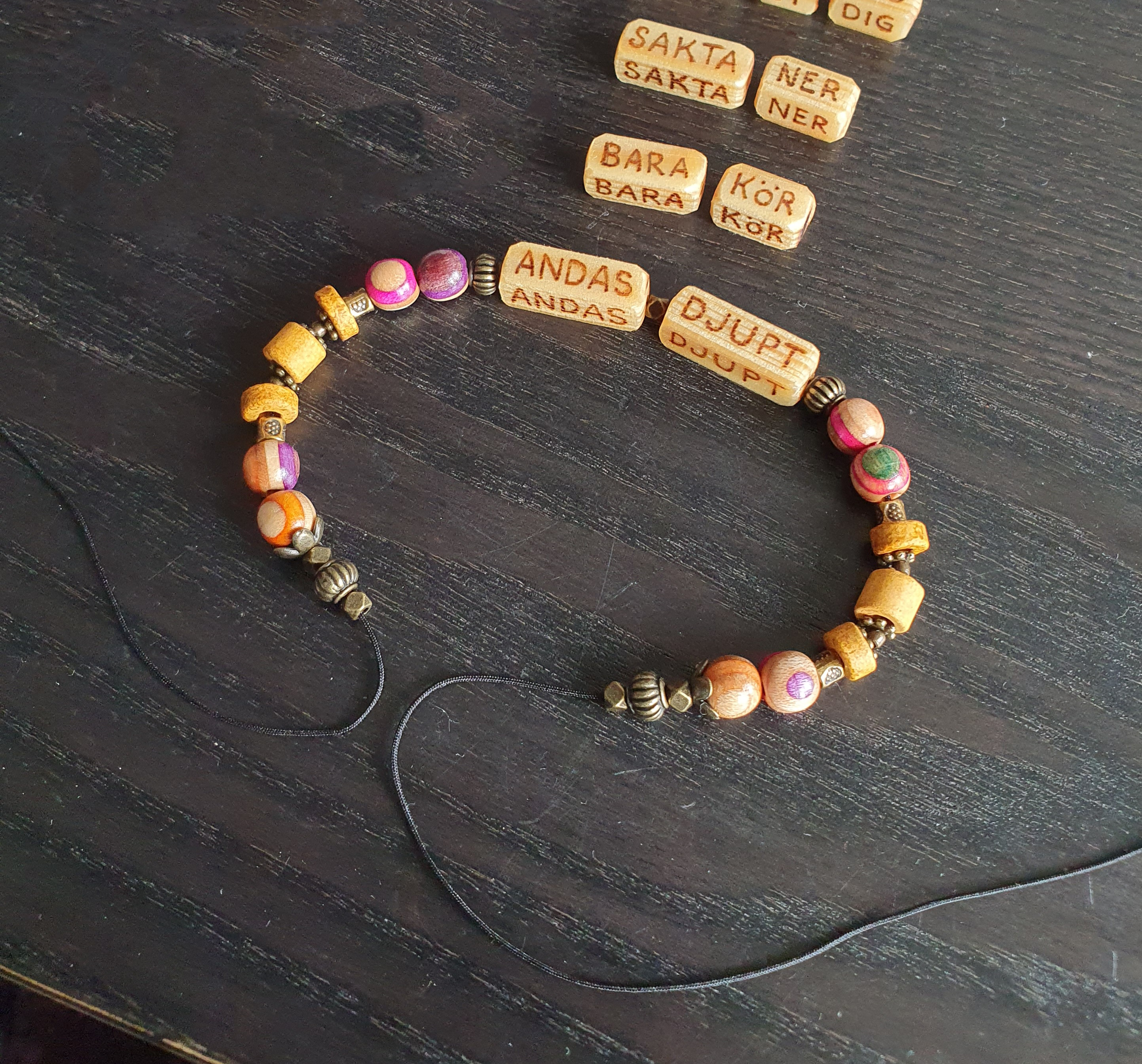 The round wooden beads are made out of